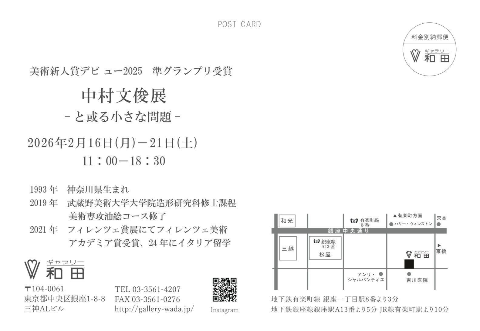 ギャラリー和田 〒104-0061 東京都中央区銀座1-8-8 三神ALビル